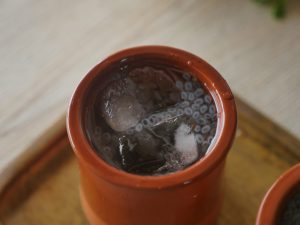 Serving glass mein ice cubes aur gur ka sharbat dal ker serve karein.