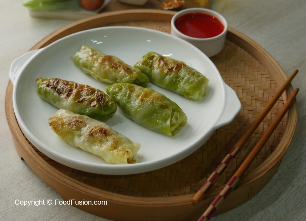 In frying pan,add olive oil and fry cabbage wraps from both sides until golden brown.