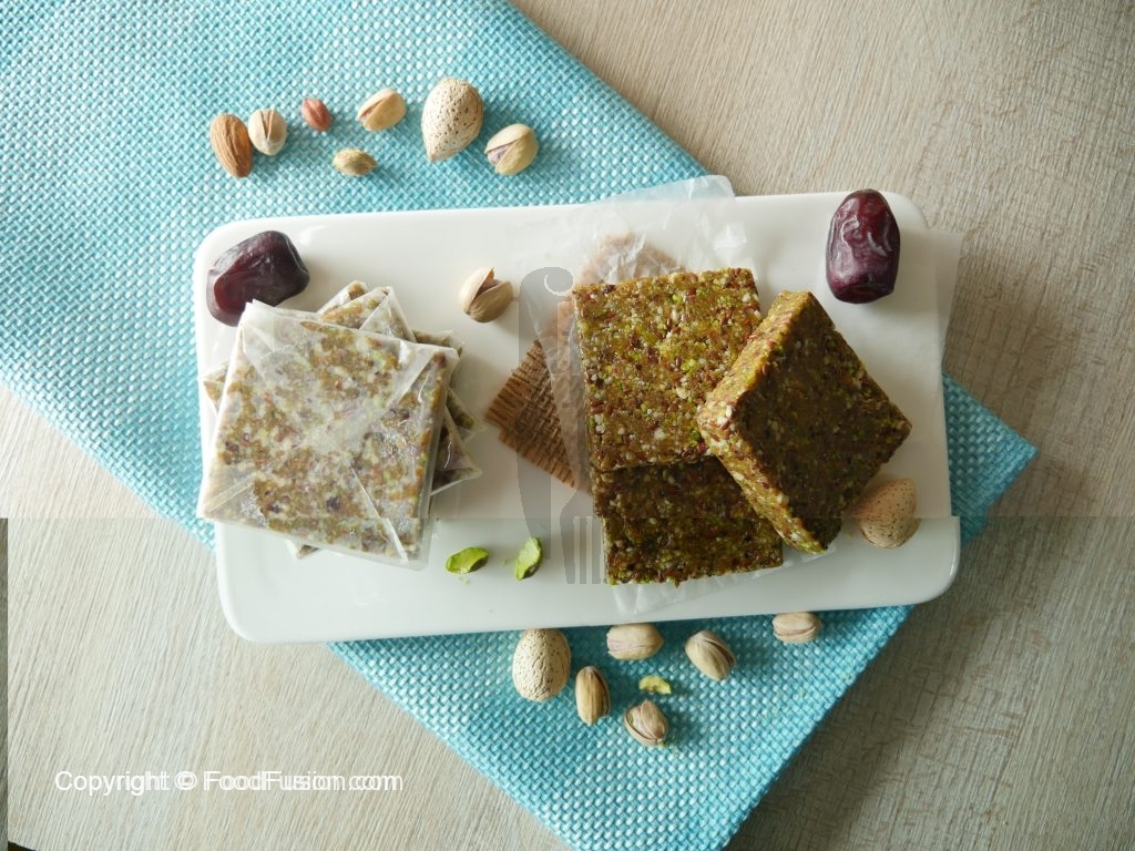 In chopper,add almonds,pistachio,flax seeds,coconut oil,dates and chop until well combined.