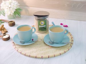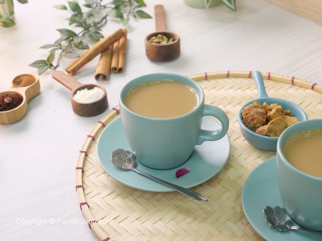 In blender,add milk powder,cloves,green cardamom,cinnamon stick,star anise,ginger powder, jaggery,tea leaves & grind well.