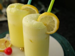 -In a shaker,add crushed ice,prepared lemon sugar syrup (3-4 tbs),coconut milk,close the lid and shake well.