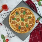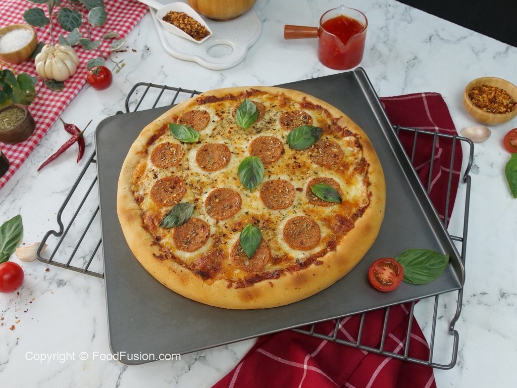 -Lal mirch crushed,lehsan powder aur dried oregano chirak dein aur sides ko cooking oil sa grease ker lein (makes 2).