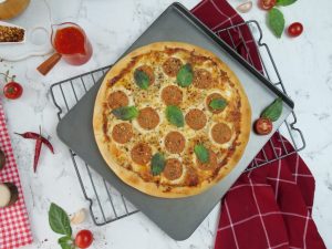 -Sprinkle red chilli crushed,garlic powder,dried oregano & grease the sides with cooking oil (makes 2).