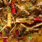 -In a bowl,add mutton chops,mutton mixed boti,pink salt,red chilli powder,garam masala powder, coriander powder,turmeric powder,cumin seeds,ginger garlic paste,lemon juice & mix well,cover & marinate for 1-2 hours.