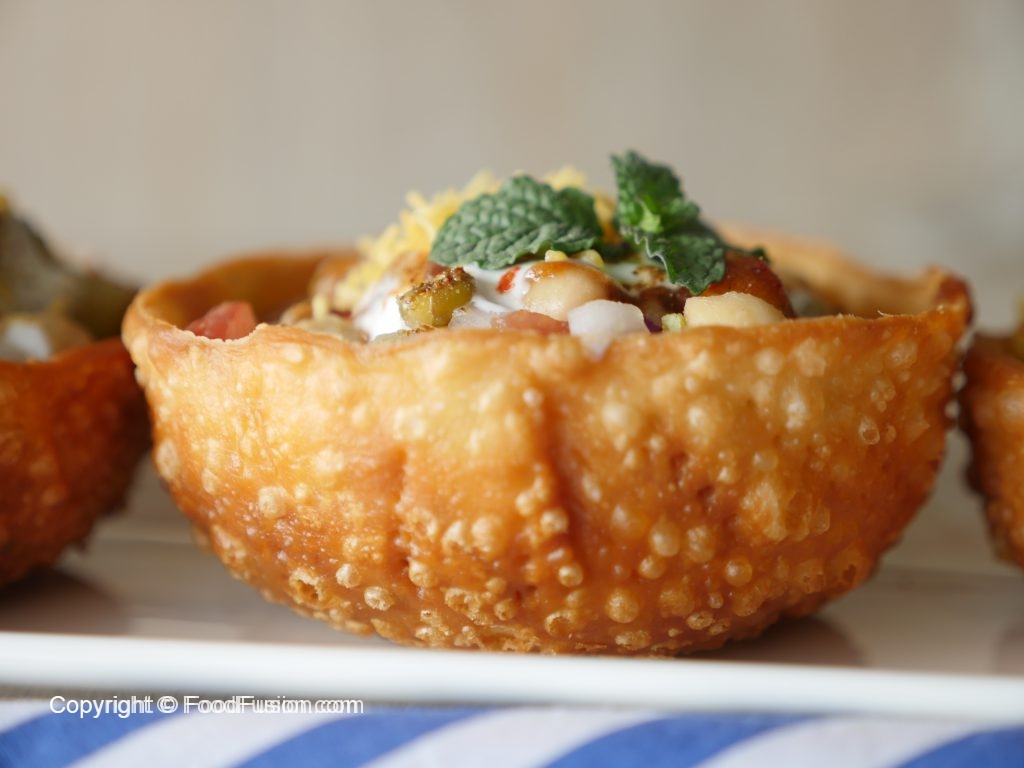 In wok,heat oil and fry katori wrapped with dough until golden & crispy and remove small bowl with the help of the tong (makes 10-12).