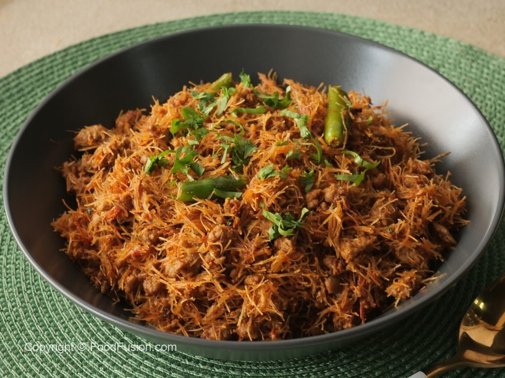 In frying pan,add cooking oil,crushed vermicelli & cook on low flame until light golden (2-3 minutes) & set aside.