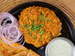 -Garnish with fresh coriander & green chillies, serve with naan & onion rings.