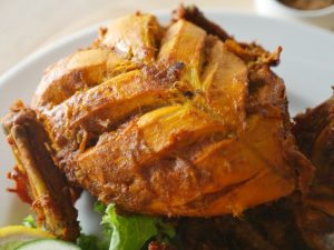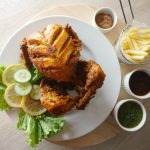In wok,heat oil and deep fry whole chicken until golden brown.