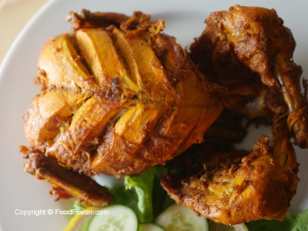 In pot,add water and heat it,place steam rack and marinated whole chicken,cover and steam cook for 35-40 minutes and basting with the remaining marinade.