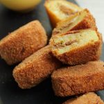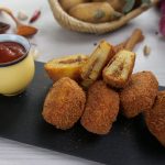 -Dip stuffed potato in whisked eggs & coat with breadcrumbs then again dip in whisked eggs & coat with breadcrumbs.