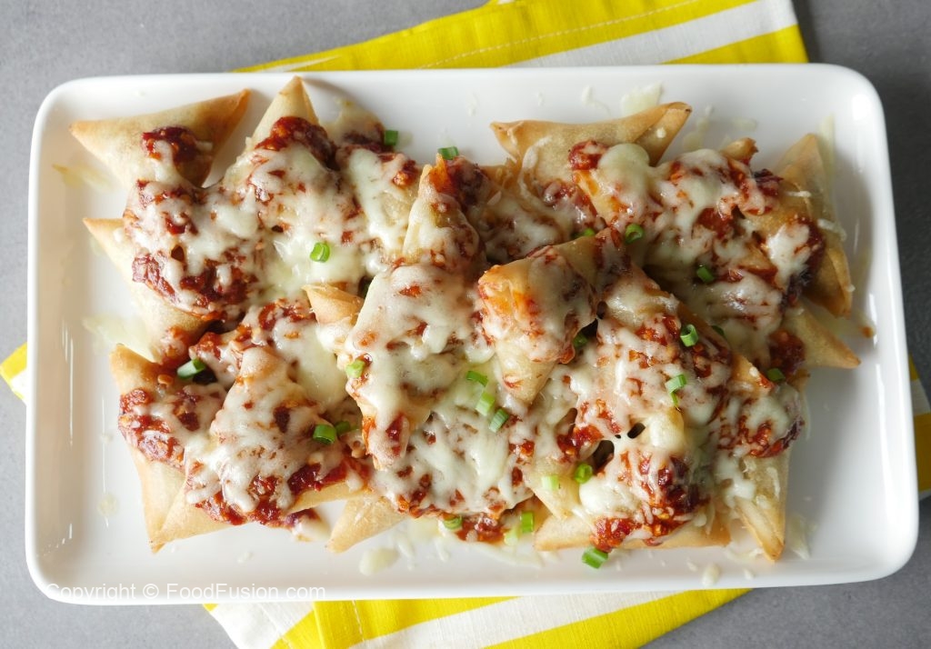 Serving paltter mein fried samosa rakh ker tayyar fire sauce pour karein.