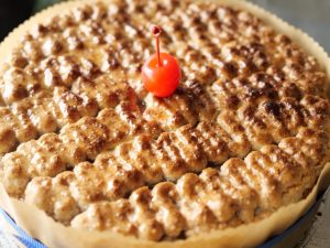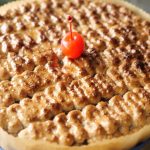 -Spread a layer of prepared macaroon topping then make a line of wavy design and bake again in preheated oven at 130C for 20-22 minutes (turn on top grill only).