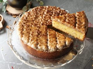 -Remove cake from pan and place it on a cake stand.