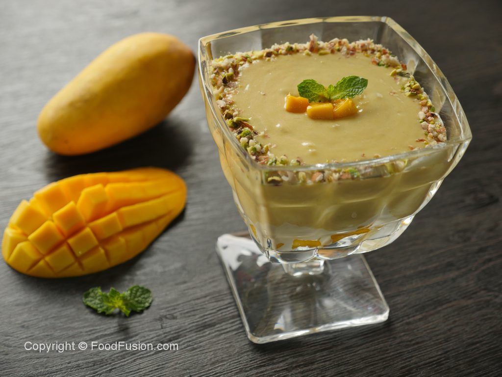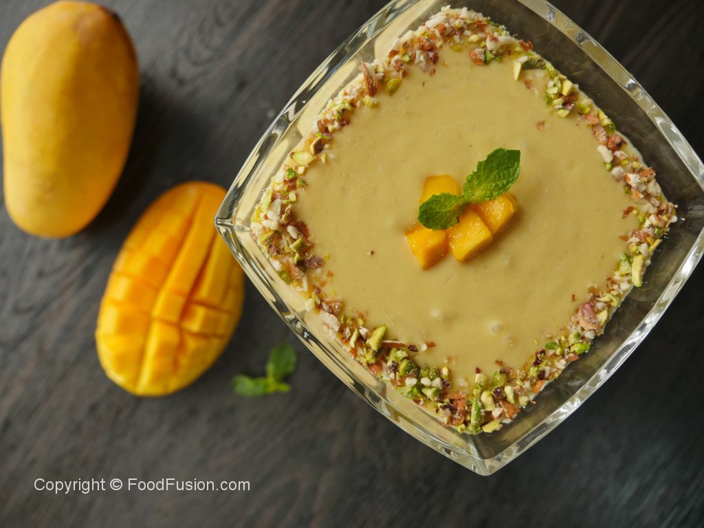 Garnish with mango cubes,dry nuts and refrigerate until chilled.