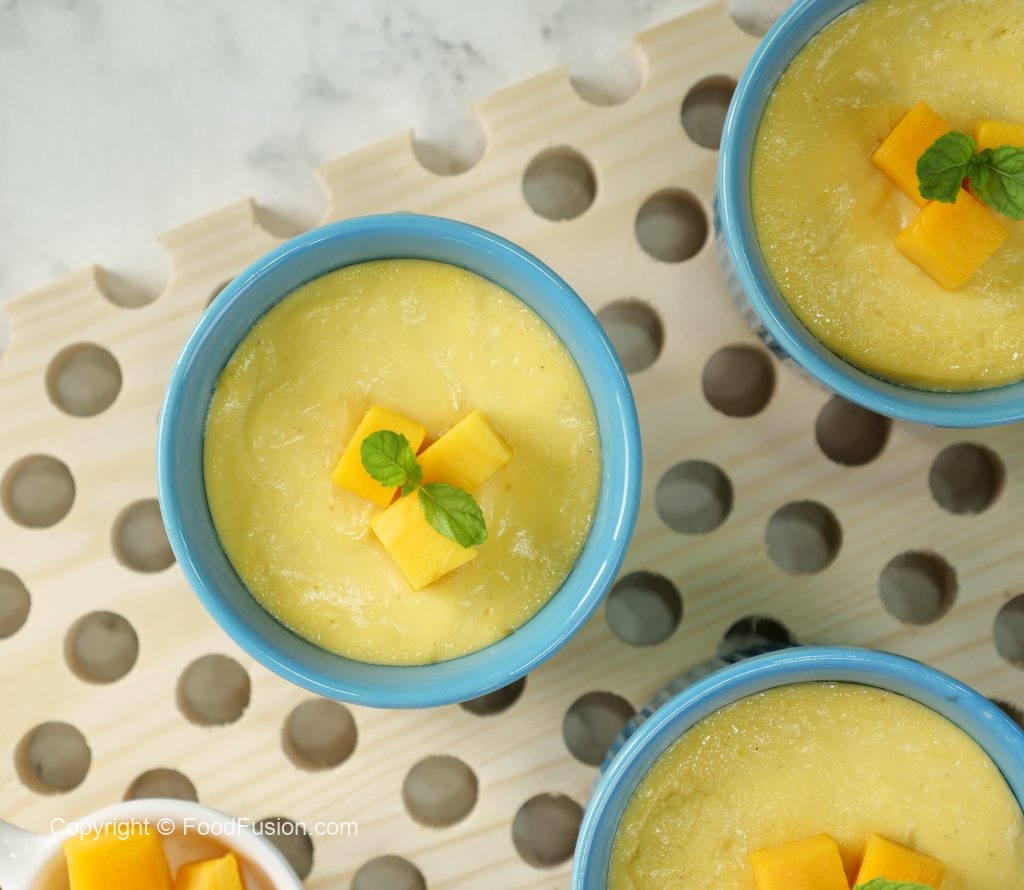 -Garnish with mango chunks,mint leaves & serve (makes 5-6).
