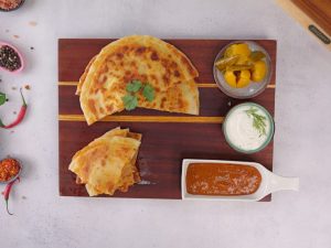 -On one rolled dough, spread mayonnaise, prepared chicken filling, mix cheese, prepared hot mustard sauce (1 tbs) & place another rolled dough over it & seal properly.