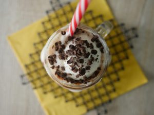 Serving jar mein chocolate syrup,tayyar smoothie,ice cream dal dein aur chocolate sa garnish ker ka chilled serve karein.