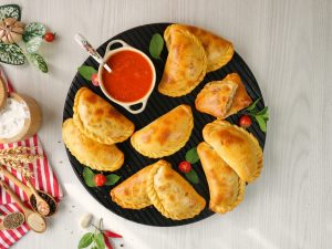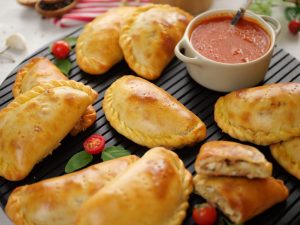 -Place the calzones on a baking tray lined with butter paper.