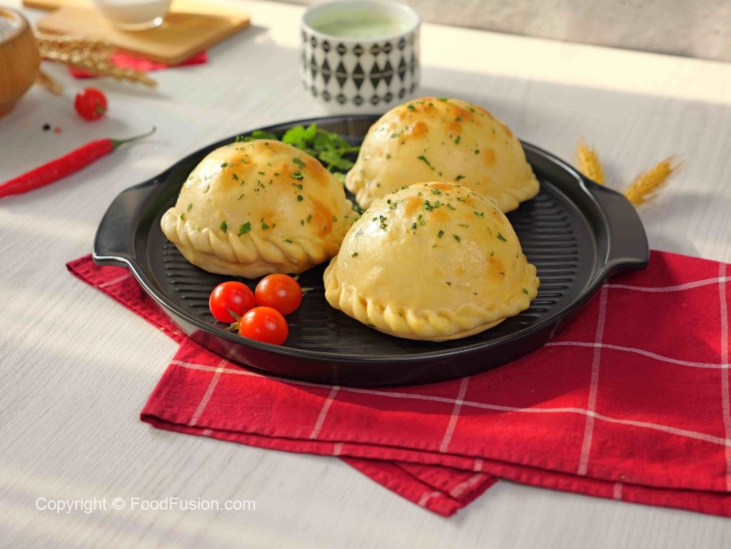 -Add prepared chicken filling in the center of the circle dough, add mix cheese, green chilli, fresh coriander.