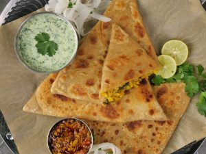 -Heat griddle & fry paratha on medium flame from both sides with clarified butter (makes 5).