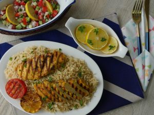 Grinder mein hara pyaz ka safeed hissa,lehsan paste,zeera powder,haldee powder,namak,paprika powder,lal mirch powder,lemon juice aur olive oil dal ker ache tarhan grind ker lein.