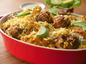 In pot,add half quantity of boiled rice,meat balls with gravy,mint leaves,fresh coriander and remaining quantity of boiled rice.