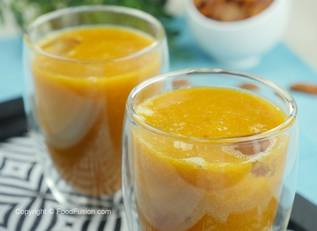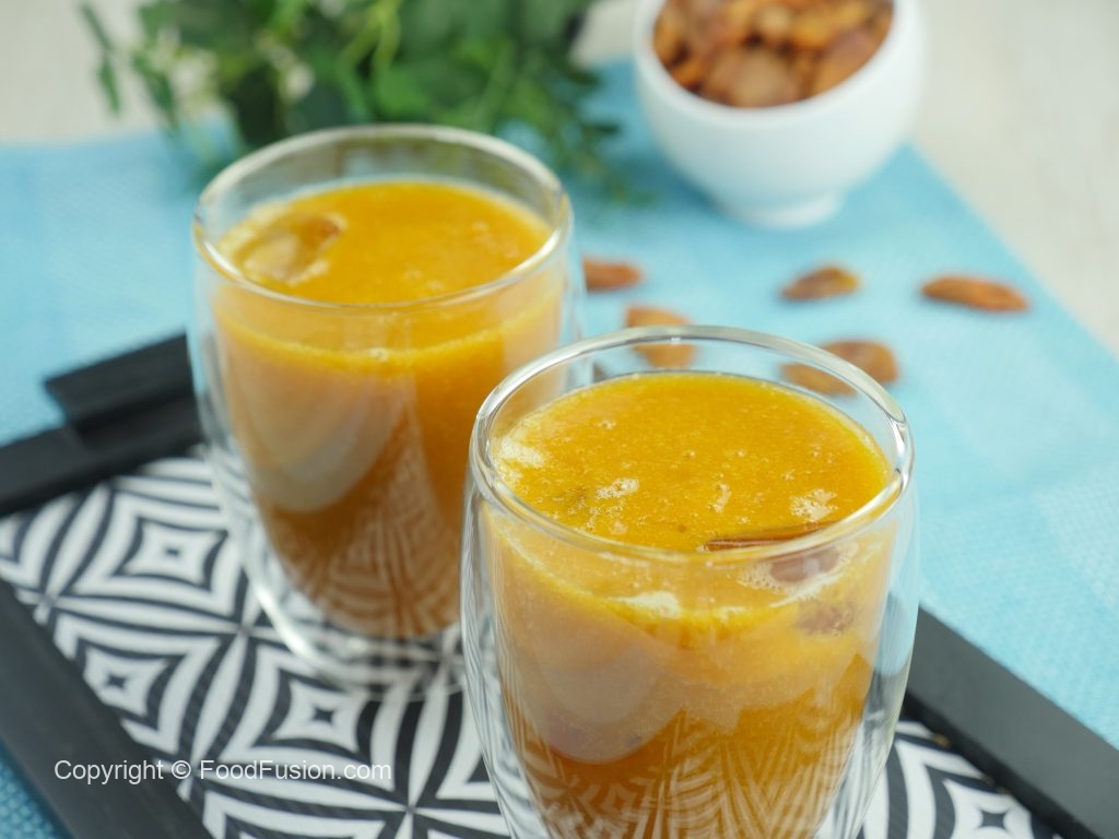 Serving glass mein ice cubes aur apricot juice dal ker serve karein!