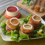 Ab pheetay hoye anday mein dip karein phir breadcrumbs mein coat ker lein.