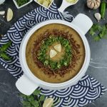Tayyar cooked mutton gravy ka saath dal ker ache tarhan mix karein aur hand blender ki madad sa coarsely blend ker lein.