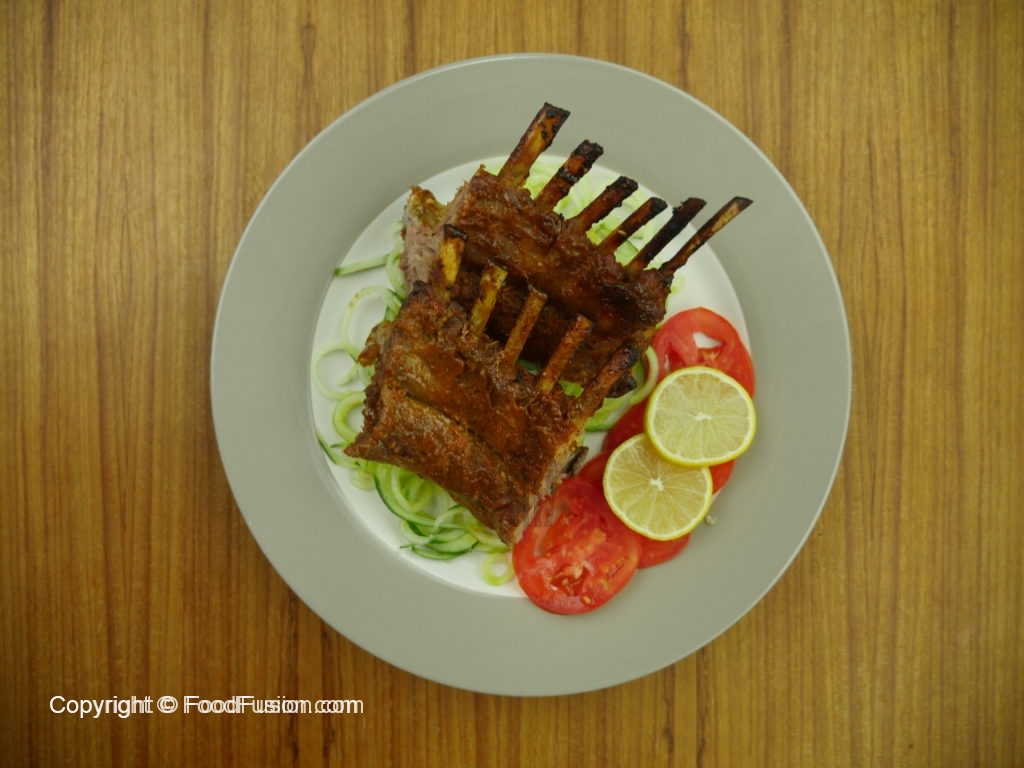 Marinated mutton ribs ko aluminum foil mein fold karein aur preheated oven mein 180 C per 1 hour kliya bake ker lein.