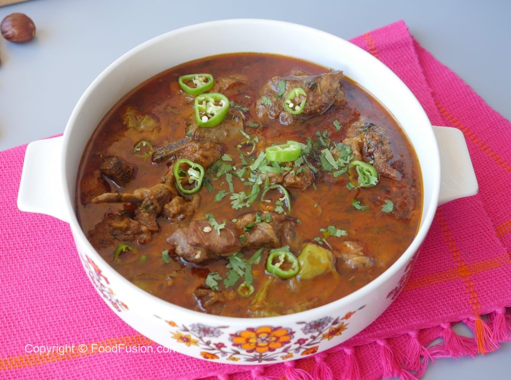 Pani dal ker ubal anay dein aur dhak ker halki ancch per gosht gul janay tak paka lein (35-45 minutes) phir tez ancch per oil alag hunay tak paka lein.