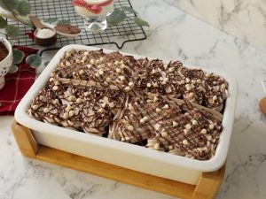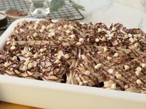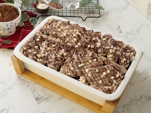 -Drizzle melted Nutella & add white chocolate chips,cut into desired pieces & serve!