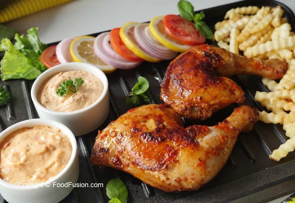 Yogurt peri peri sauce & mayo peri peri sauce ka saath serve karein!