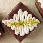 -Cut into pieces & decorate with white chocolate ganache,pistachios & serve!