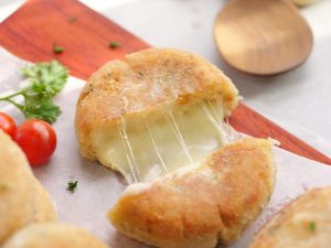 -Add mozzarella cheese & wrap the cling film to make a thick pancake shape.