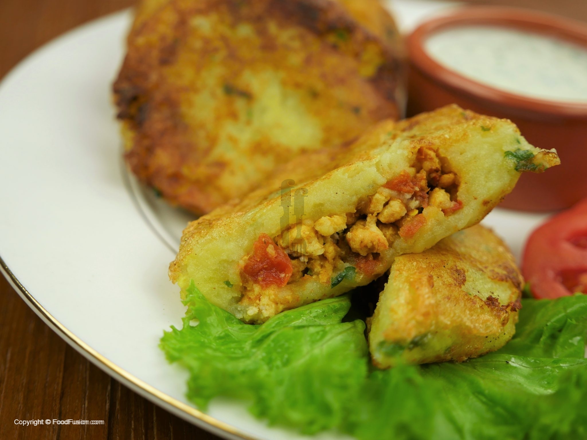Cutlets banana kliya, allo k mixture la ker flat kabab bana lein,bech mein filling rakh k dono haathon ki madad sa daba ker kabab bana lein.