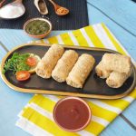 In a wok,heat cooking oil and fry potato samosa roll on low flame until golden.