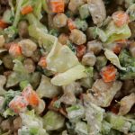 -In a mason jar,add prepared ranch dressing,cucumber,chickpeas,carrot,celery,cooked chicken, iceberg & cover with lid.
