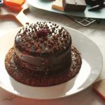 Now pour prepared chocolate glaze on the cake, sprinkle cocoa powder & sprinkles of your choice.
