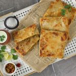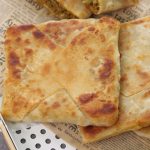 -On rolled dough,add prepared filling,fold one side & apply flour slurry then fold & apply flour slurry & make a square shape paratha.