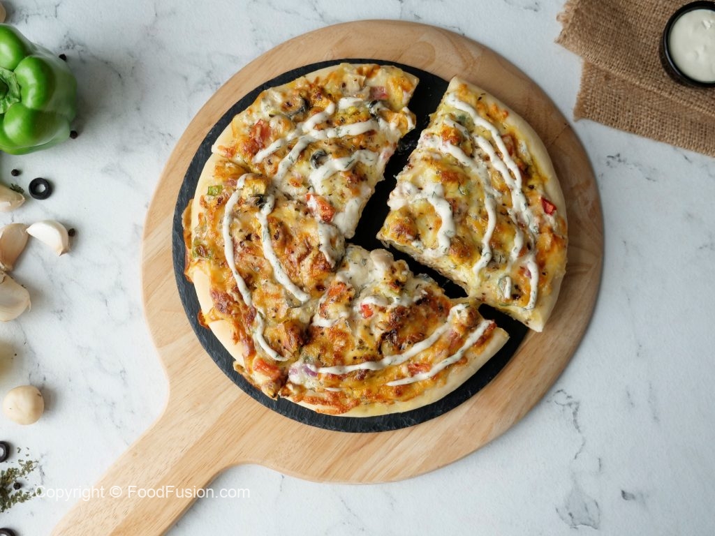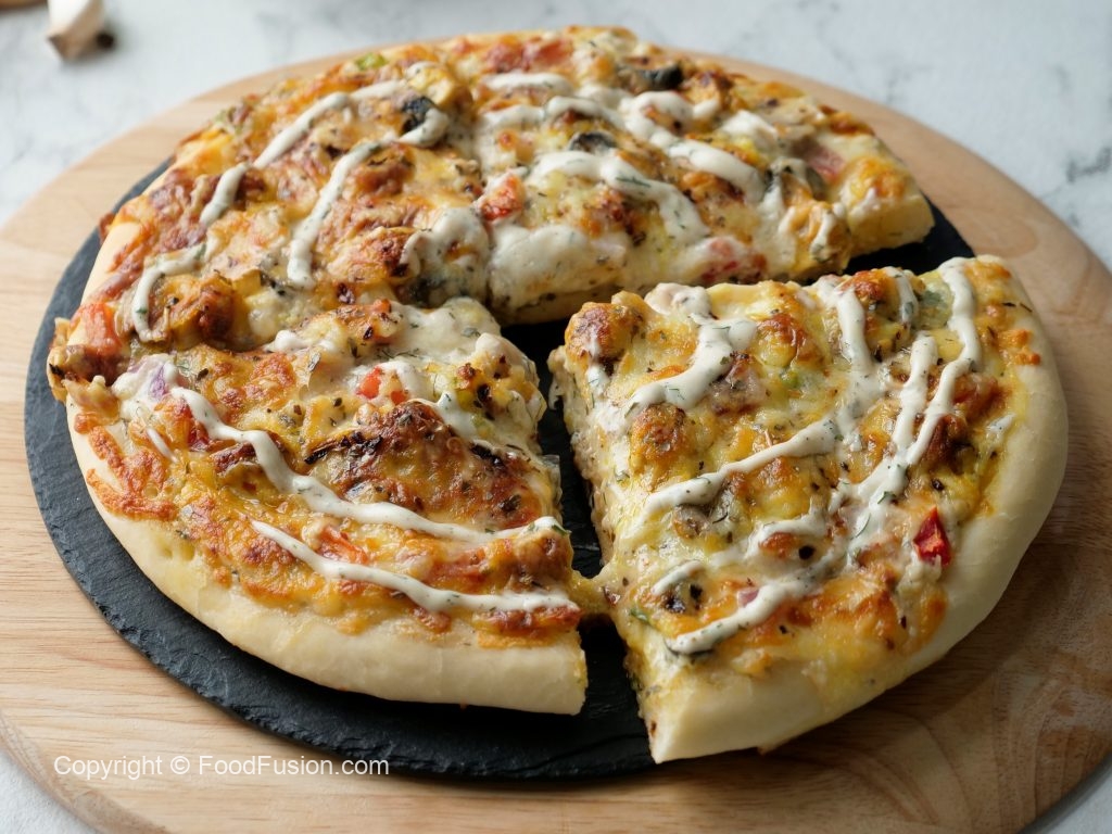 Ranch Pizza recipe with the perfect ranch sauce all homemade with restaurant quality taste. #HappyCookingToYou #FoodFusion #Pizza #Recipe