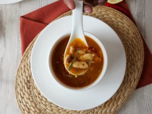 -In a serving bowl,add hot & sour soup & garnish with spring onion leaves,chilli oil & serve!
