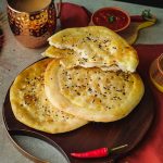 Brush on each naan and sprinkle black & white sesame seeds on top.