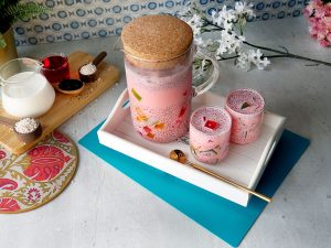 In a jug,add milk,rose syrup,condensed milk,whisk well & set aside.