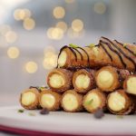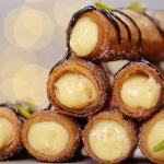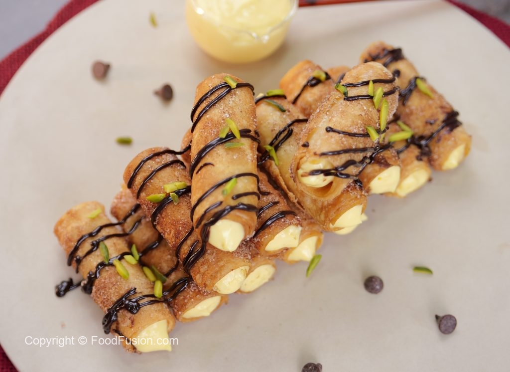 -Pipe out prepared creamy custard in the cinnamon sugar-coated samosa rolls.