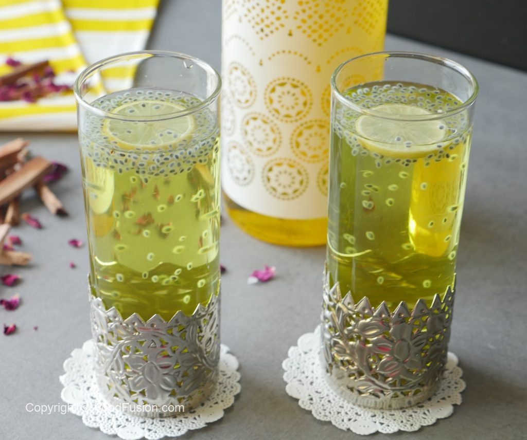 Serving glass mein ice cubes aur tayyar sandal ka sharbat dal ker serve karein.