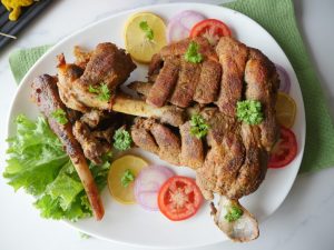 Mutton leg ko prick ker ka marks/cuts laga lein.