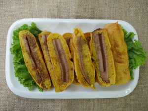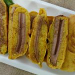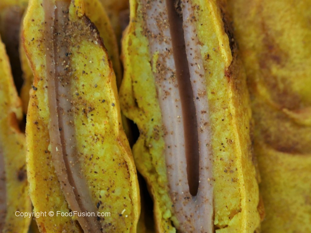 Cut lotus root from the center into two halves and take potato mixture and coat properly on lotus roots & set aside.
