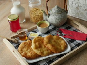 -In a bowl add flour, salt, clarified butter, mix with hand.