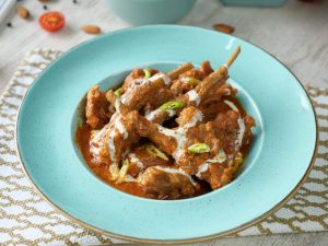 On serving dish,add prepared pulao,kabab with gravy and yogurt.